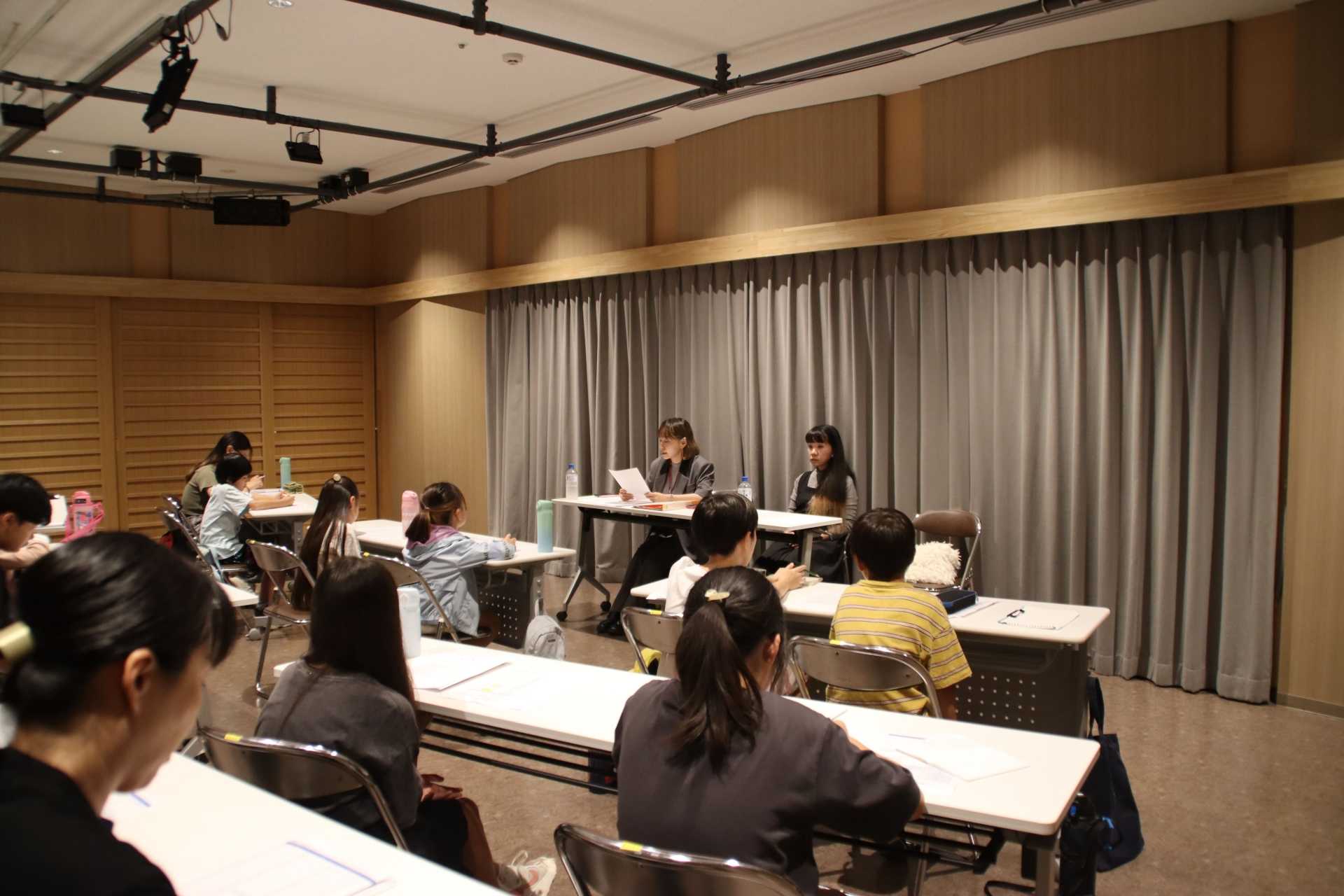 はじめに、「劇場留学」は三の丸ホールの演劇分野の文化事業の企画であり、これまで実施した「お芝居をつくる7日間」(2023年)、「『モモ』と時間の旅」(2025年)の内容について説明しました。そして再びミヒャエル・エンデの『モモ』を創作・上演するにあたって、これから本番までの稽古スケジュールや連絡方法などを私から説明しました。