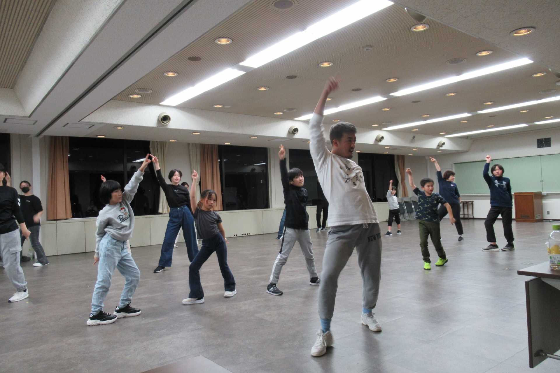 また、子どもと大人に分かれて振付けをすることもありました。子どもたちに"かえるジャンプ"の振付けがあると、みんな元気よく飛び上がるのでさすがです。