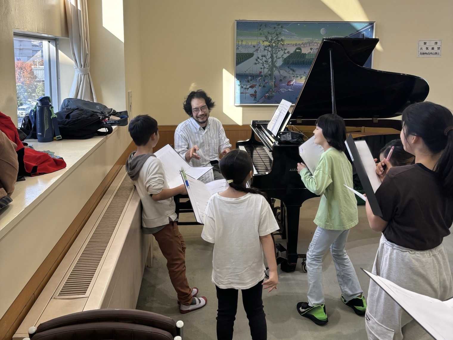 歌稽古は、作曲家の鈴木さん直々の指導です。