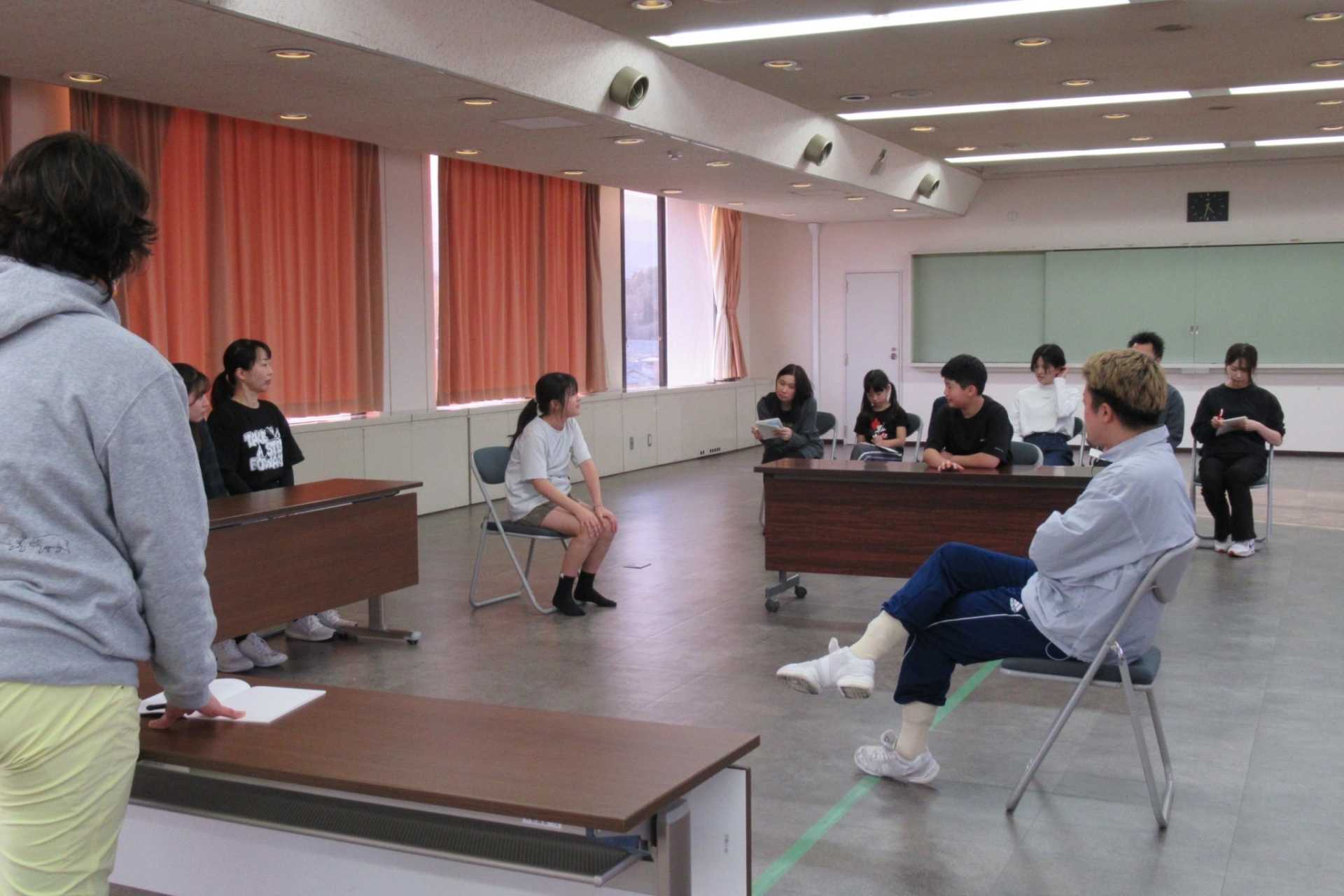 昨年度の劇場留学生に稽古場に来てもらい、稽古を見学&交流デーです。