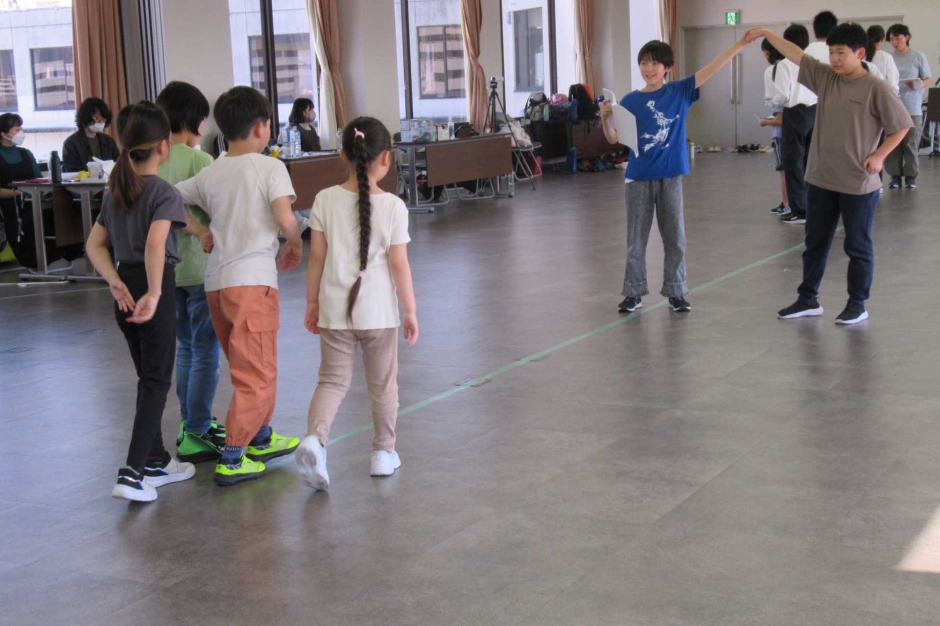 子どもたち数人で丁寧な音取りからスタート。子どもの透き通った歌声が静かな稽古場に響き渡り、一気に物語の世界観が描き出され、出演者たちは試行錯誤しながらも、楽しそうに声を合わせていました。