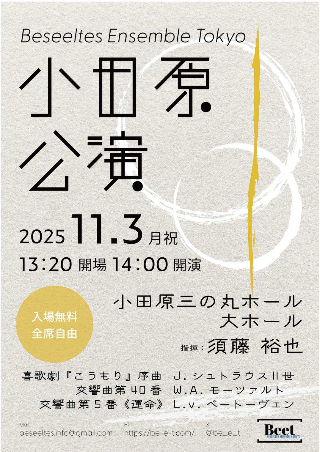 | 主催 / 問い合わせ先 | Beseeltes Ensemble Tokyo Mail:beseeltes.info@gmail.com 公式WEBサイト X:@be_e_t |