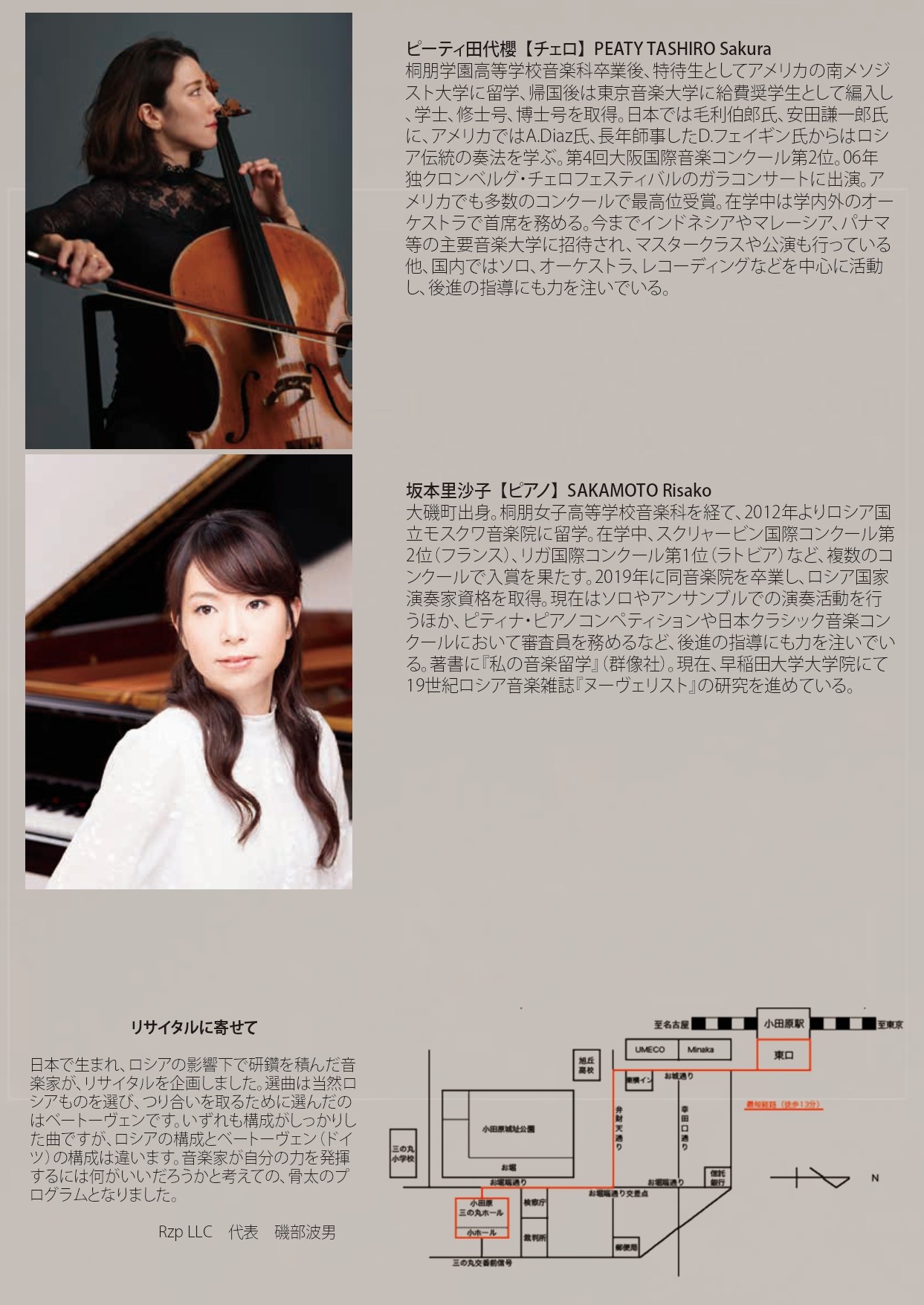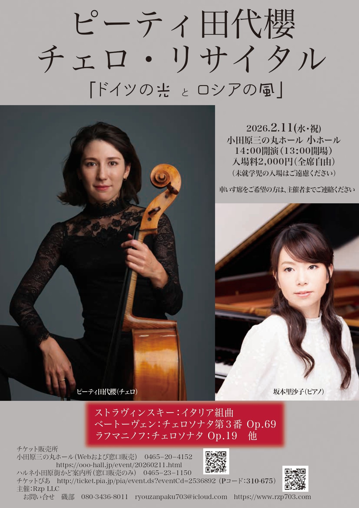 出演 | ピーティ田代櫻(チェロ) 坂本里沙子(ピアノ) |