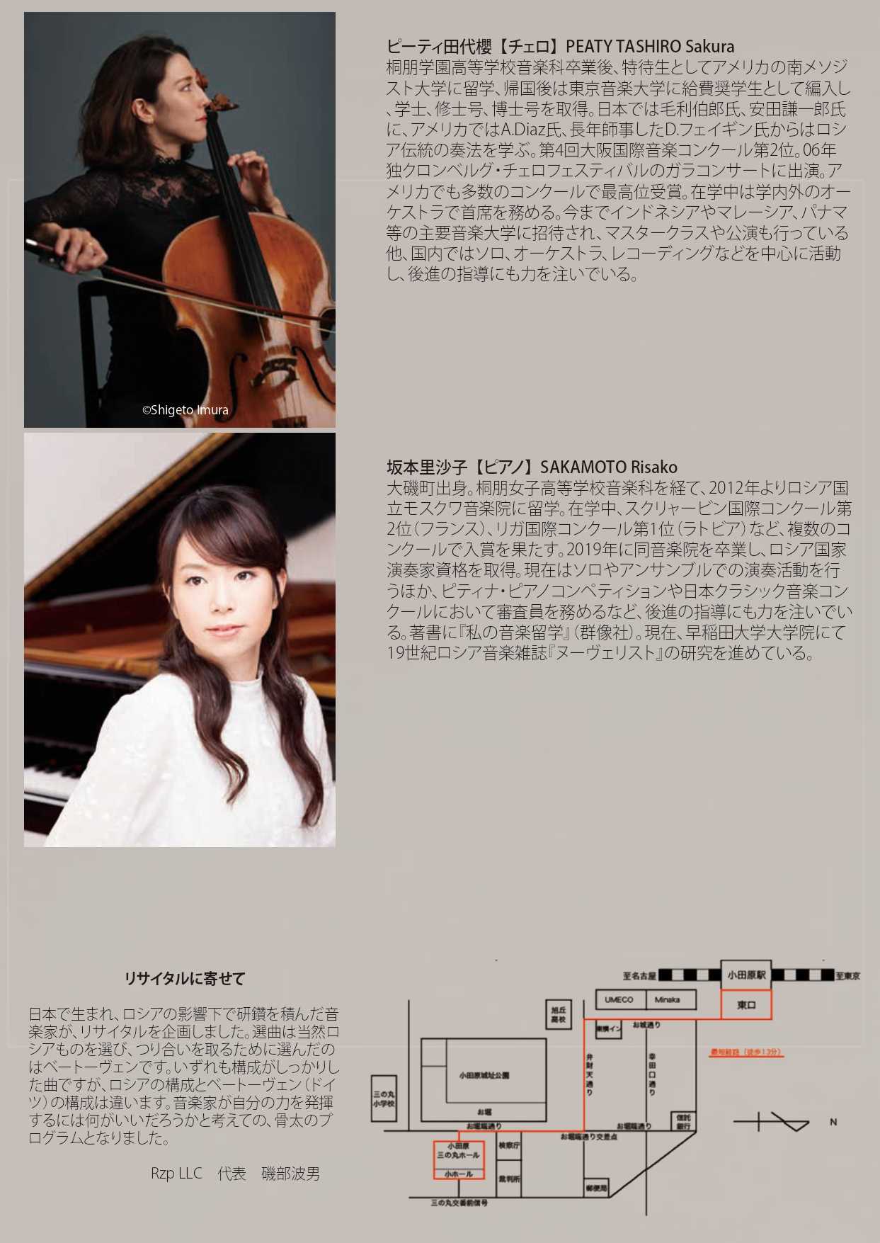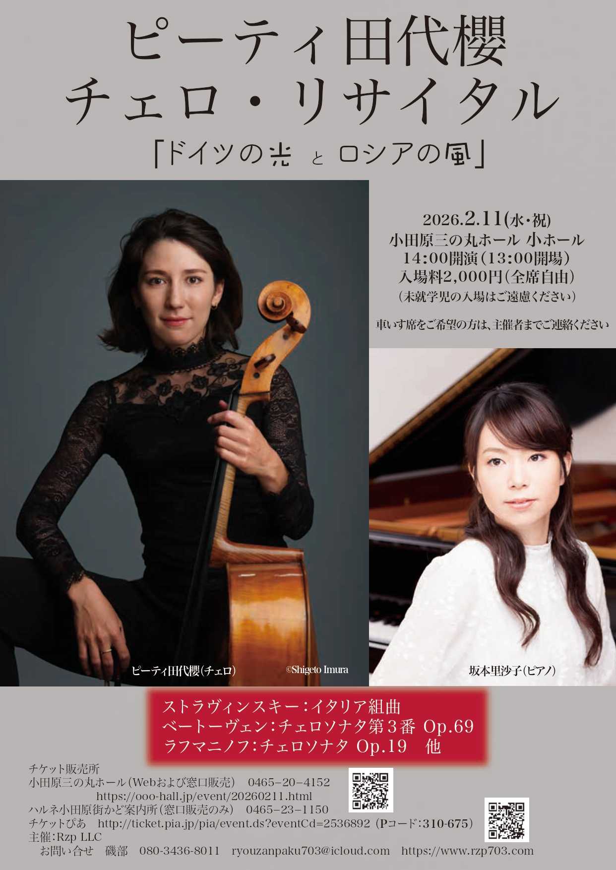 | 出演 | ピーティ田代櫻(チェロ) 坂本里沙子(ピアノ) |