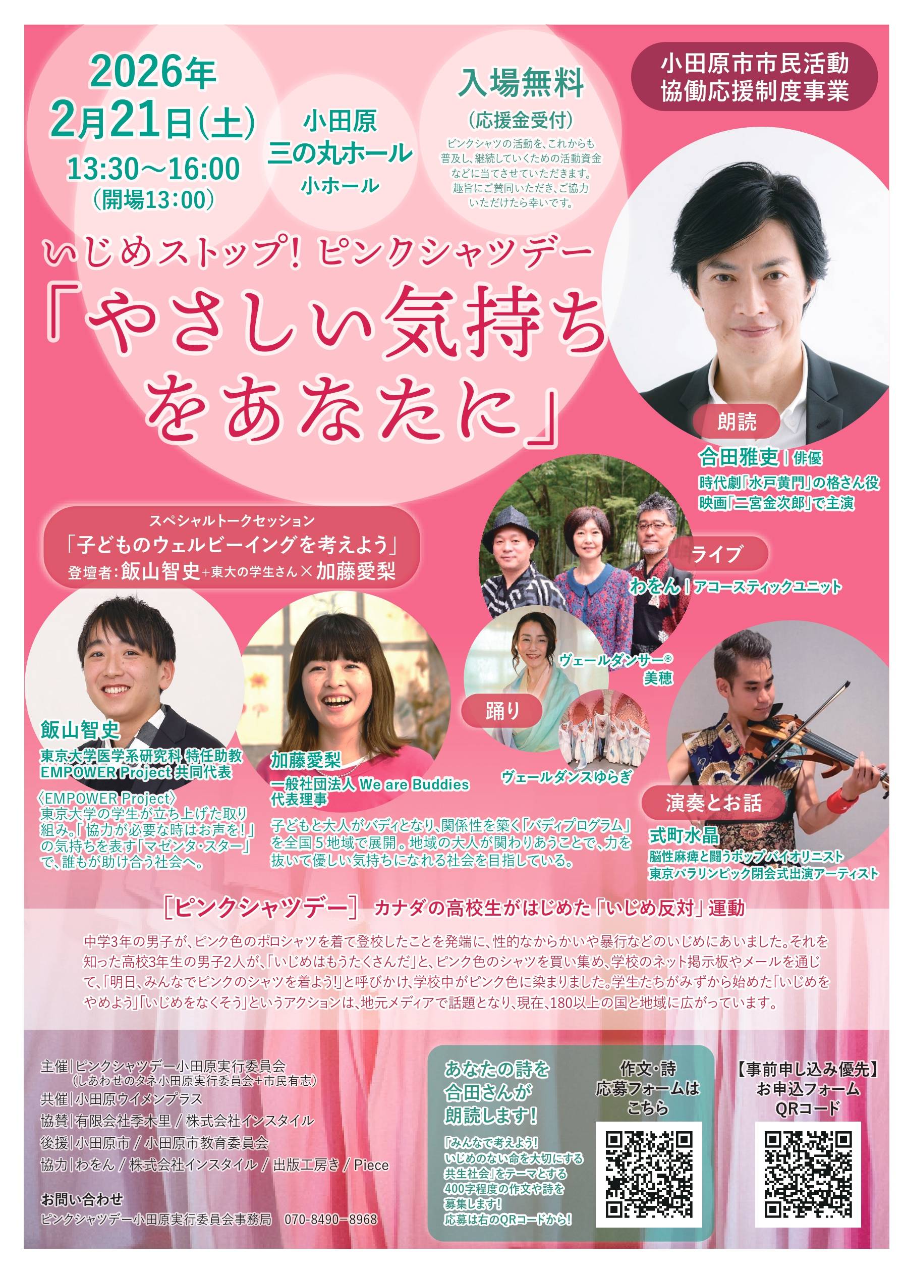 | 主催 / 問い合わせ先 | ピンクシャツデー小田原実行委員会 (しあわせのタネ小田原実行委員会+市民有志) TEL:070-8490-8968(事務局) SNS:Facebook |