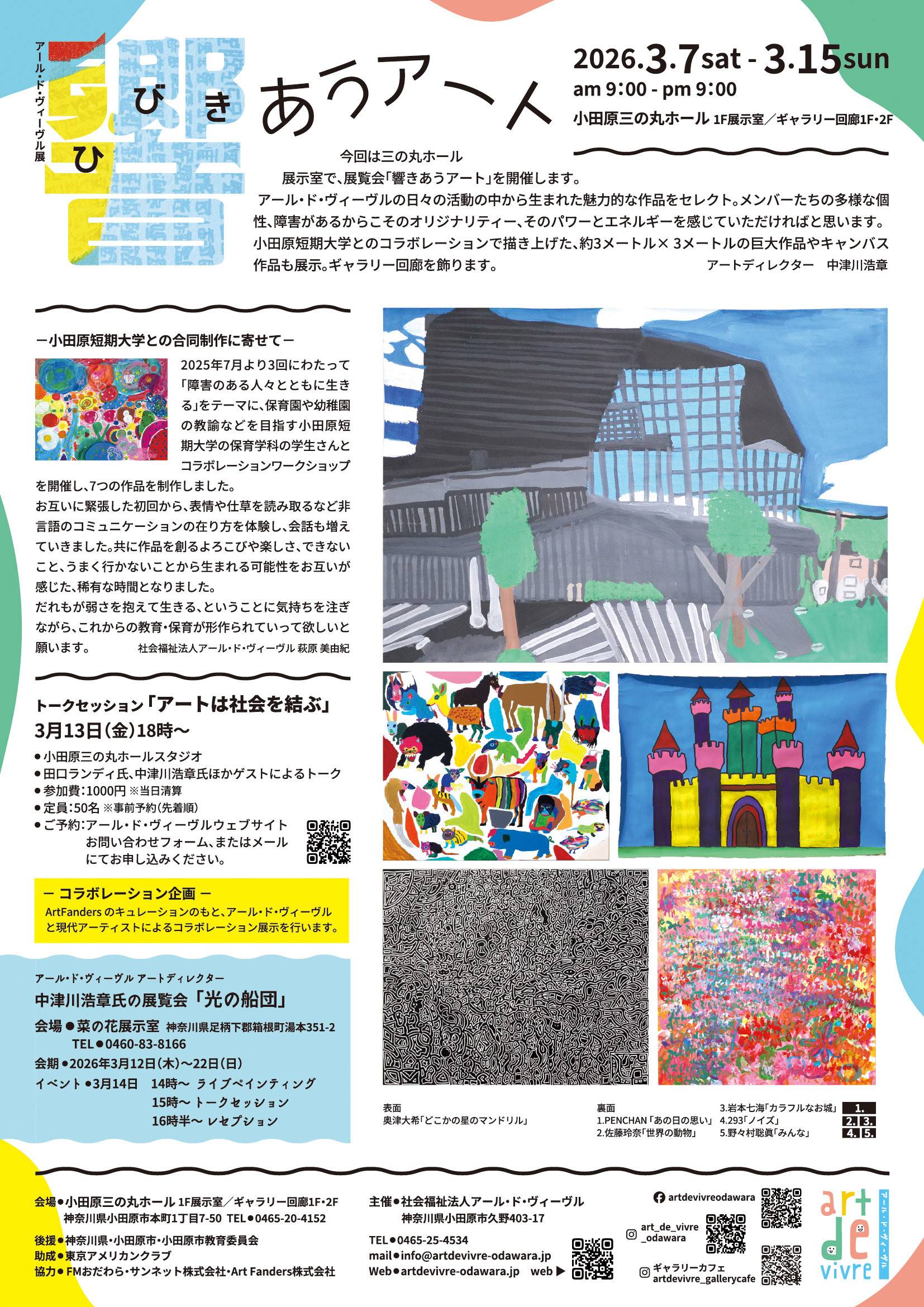 | 主催 / 問い合わせ先 | 社会福祉法人アール・ド・ヴィーヴル TEL:0465-25-4534 Mail:info@artdevivre-odawara.jp |