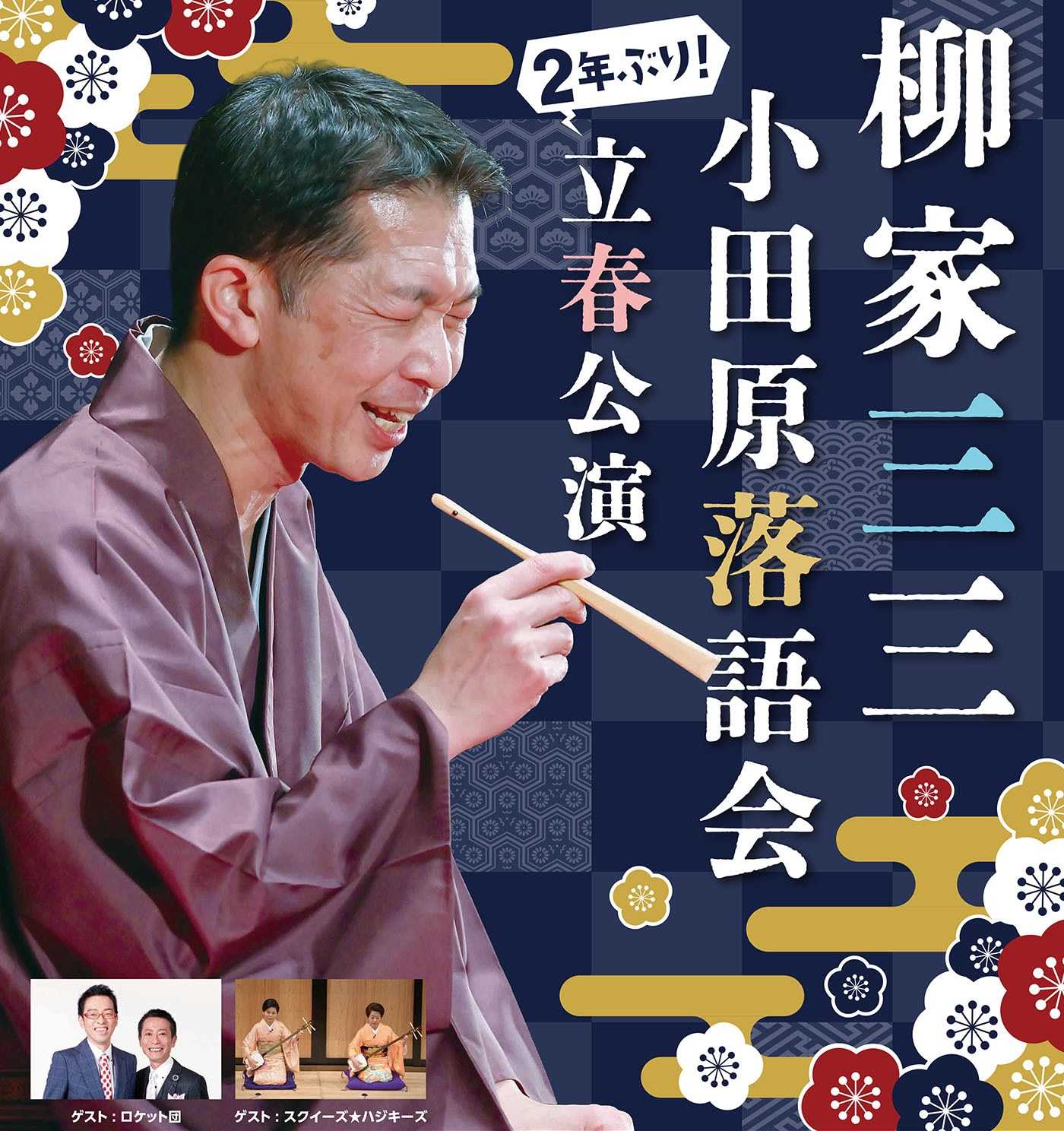 | ●柳家三三 小田原落語会 立春公演 | 2月8日(日)13:30 | 大ホール | 柳家三三(落語・小田原ふるさと大使) ロケット団(漫才)、スクイーズ★ハジキーズ(長唄三味線/お囃子) |