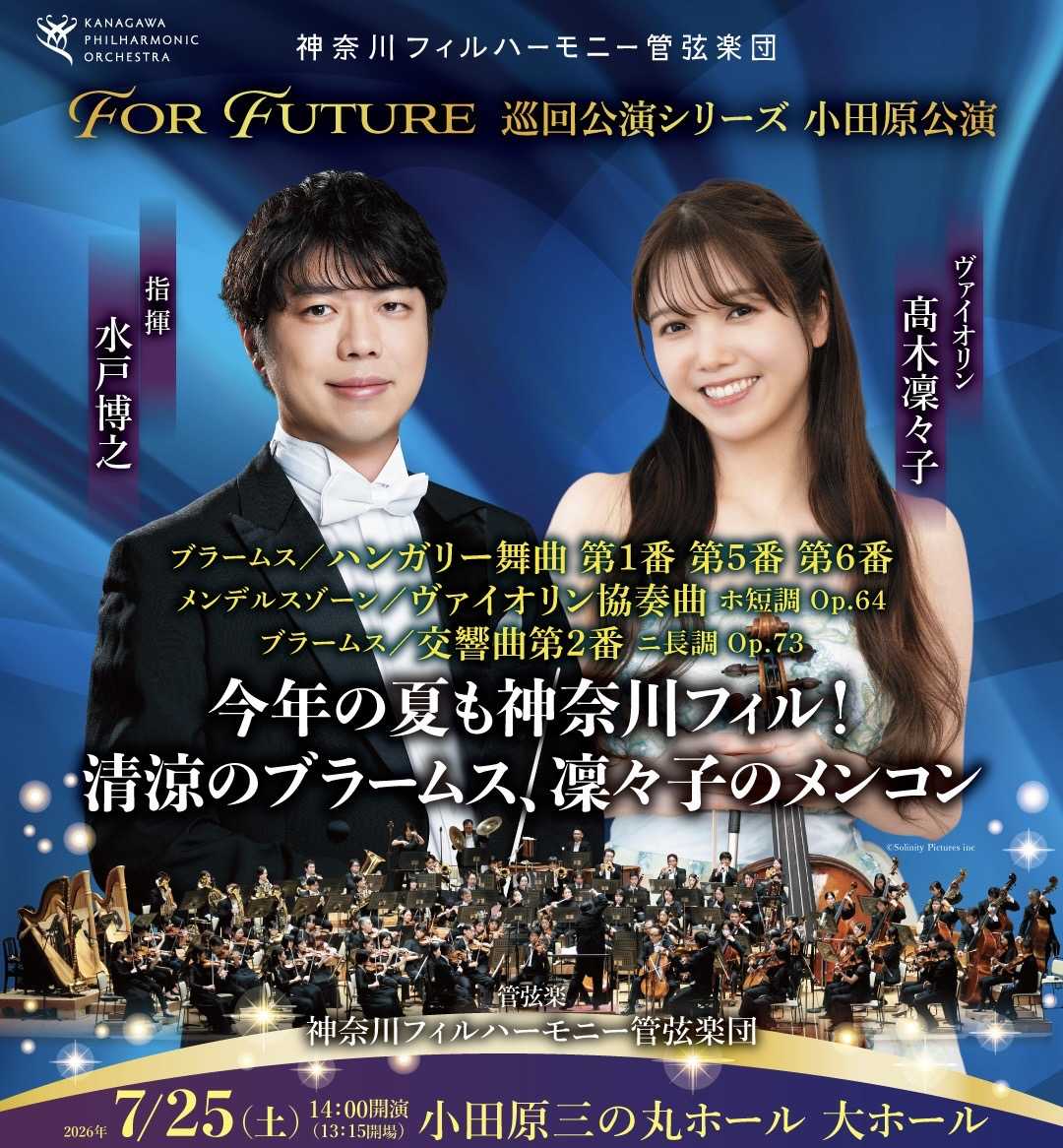 | ●神奈川フィルハーモニー管弦楽団 For Future 巡回公演シリーズ 小田原公演 | 2026年7月25日(土) | 大ホール | 水戸博之(指揮) 髙木凜々子(ヴァイオリン 神奈川フィルハーモニー管弦楽団(管弦楽) |