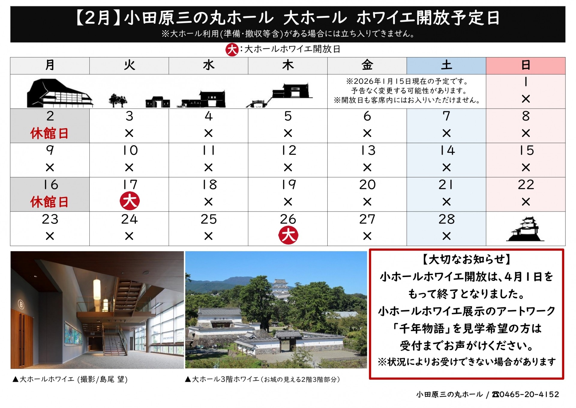 大ホールホワイエ開放予定日程